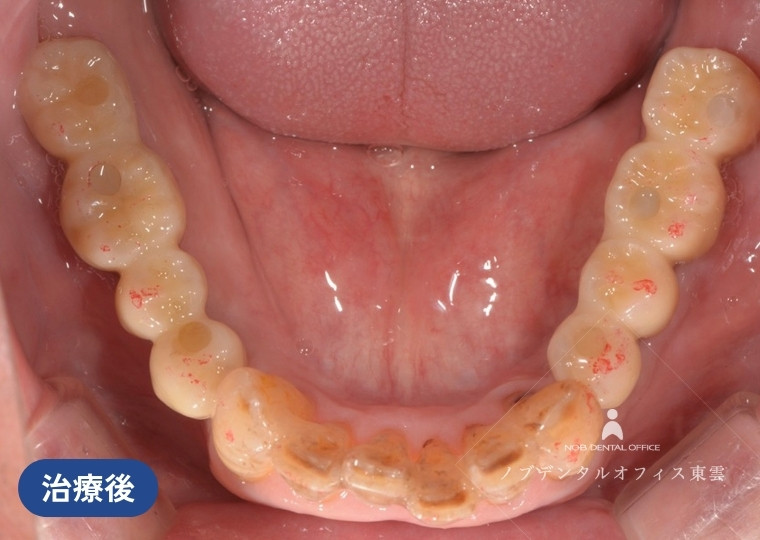 インプラントが骨と安定したことを確認した後、上部構造を作製・装着し、噛み合わせの確認と調整を行います。
