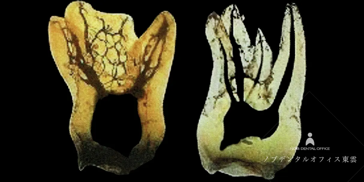 根管には神経や血管が通っていて、歯に栄養を届けています。