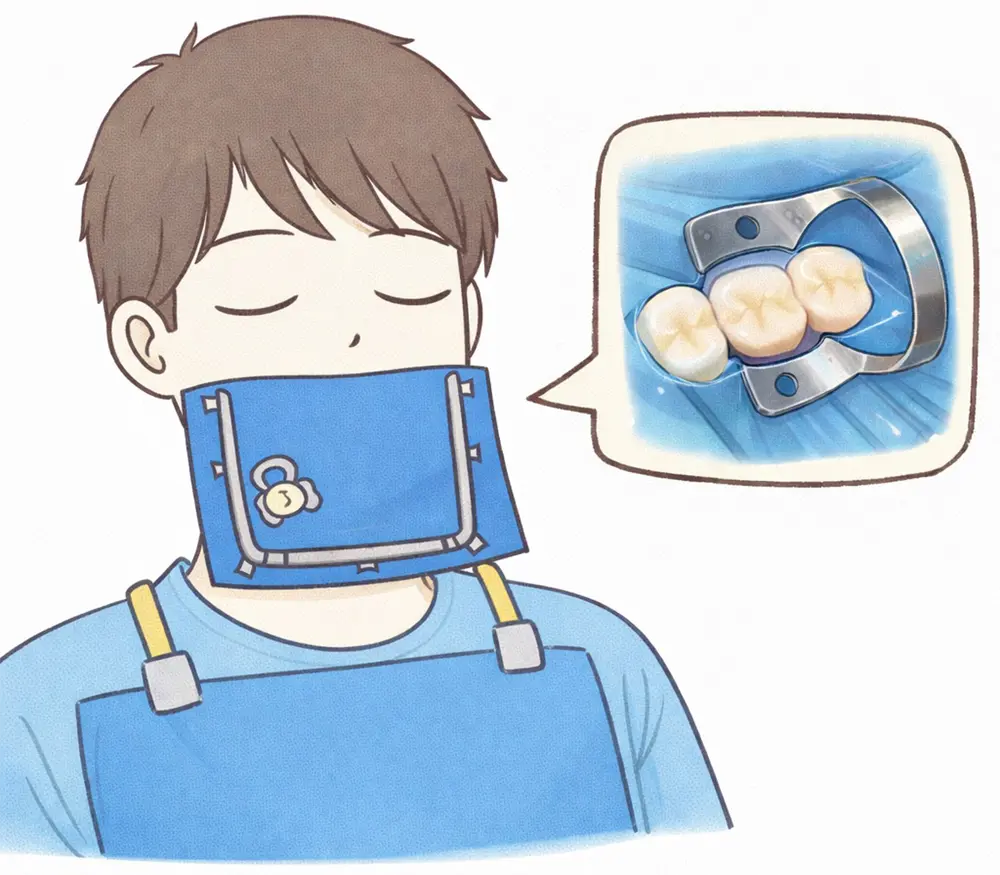 患部以外の箇所を薄いゴム状のシートで覆うことをラバーダム防湿といいます。