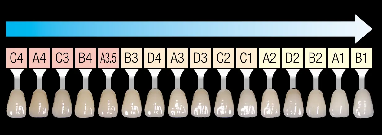 元々の歯の色や質によって個人差がありますが、多くの方がご自身の天然の歯の色合いから数段階明るくなる効果を実感されています。カウンセリング時に、シェードガイドを使ってシミュレーションすることも可能です。